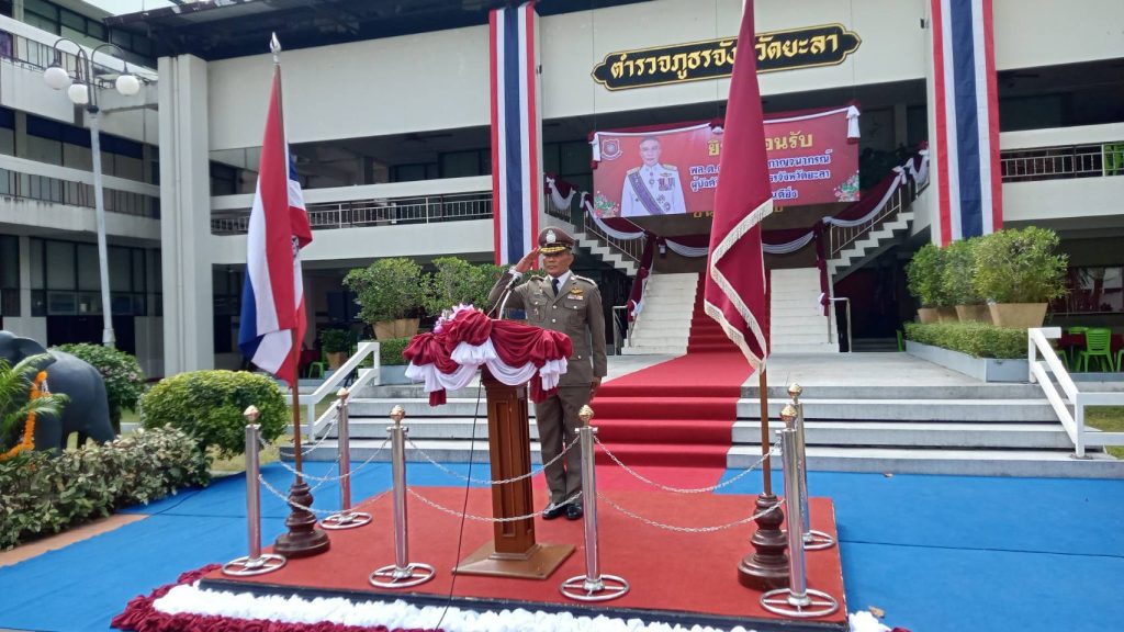 พล.ต.ต.ณฐกรญ์ กาญจนาภรณ์ ผู้บังคับการตำรวจภูธรจังหวัดยะลา เดินทางมารับตำแหน่ง พร้อมกล่าวให้โอวาทแก่ข้าราชการตำรวจที่มาให้การต้อนรับ ณ ตำรวจภูธรจังหวัดยะลา
