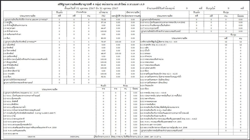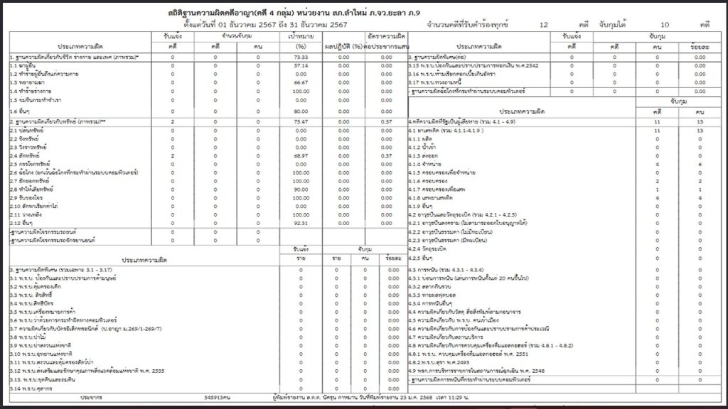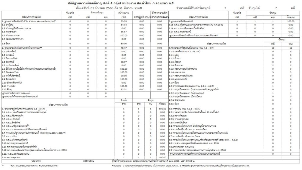 ข้อมูลผลการดำเนินงานในเชิงสถิติด้านคดีอาญา 4 กลุ่ม ตามระบบ CRIMES