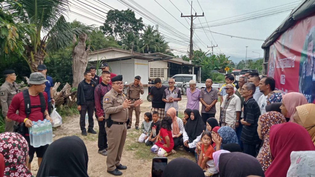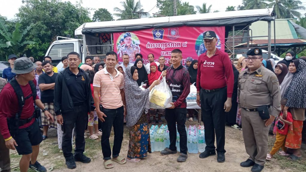 วันที่ 03 ธ.ค. 2567 เวลา 17.00 น. พล.ต.ต.เสกสันต์ ชูรังสฤษฎิ์ ผบก.ภ.จว.ยะลา, พ.ต.อ.สุวโรจน์ ลุนหวิทยานนท์ รอง ผบก.ภ.จว.ยะลา, พ.ต.อ.สันติ ศิริเกตุ ผกก.สส.ภ.จว.ยะลา, ว่าที่ พ.ต.อ.โฆษิต เบญจกุล ผกก.สภ.ลำใหม่, พ.ต.ท.ประยุทธ เหลืองทอง รอง ผกก.ป.สภ.ลำใหม่ ,พ.ต.ท.สุทัน แก้วคีรี สวป.สภ.ลำใหม่ พร้อมด้วย ตำรวจภูธรจังหวัดยะลา,กองกำกับการสืบสวนตำรวจภูธรจังหวัดยะลา และข้าราชการตำรวจ สภ.ลำใหม่ ได้ออกเยี่ยมเยียนให้กำลังใจ และช่วยเหลือมอบสิ่งของอุปโภค บริโภคให้กับประชาชนที่ประสบอุทกภัยในพื้นที่ ณ บ้านตาสา ต.พร่อน, ชุมชนหน้าวัดลำใหม่ ต.ลำใหม่ และบ้านผู้ใหญ่บ้าน ม.2 ต.พร่อน อ.เมืองยะลา จว.ยะลา